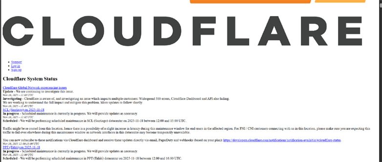 Τεχνικά προβλήματα στον εξωτερικό πάροχο της πλατφόρμας υποστήριξης της Cloudflare έφερε το μεσημέρι της Τρίτης (18/11) και για πάνω από δύο ώρες προβλήματα σε ιστοσελίδες.